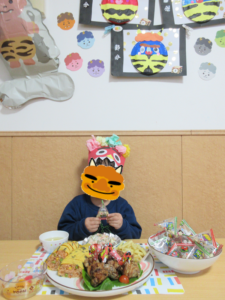3日は節分の日でした! こども達は自分で作った鬼のお面を被り、